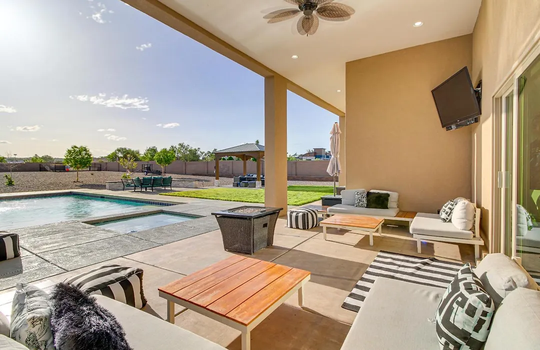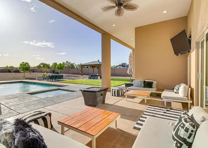 A Poolside And Hot Tub Lounging Luxe Rio Rancho Home está localizada a 25 minutos a pé da Park Above e disponibiliza jacuzzi.